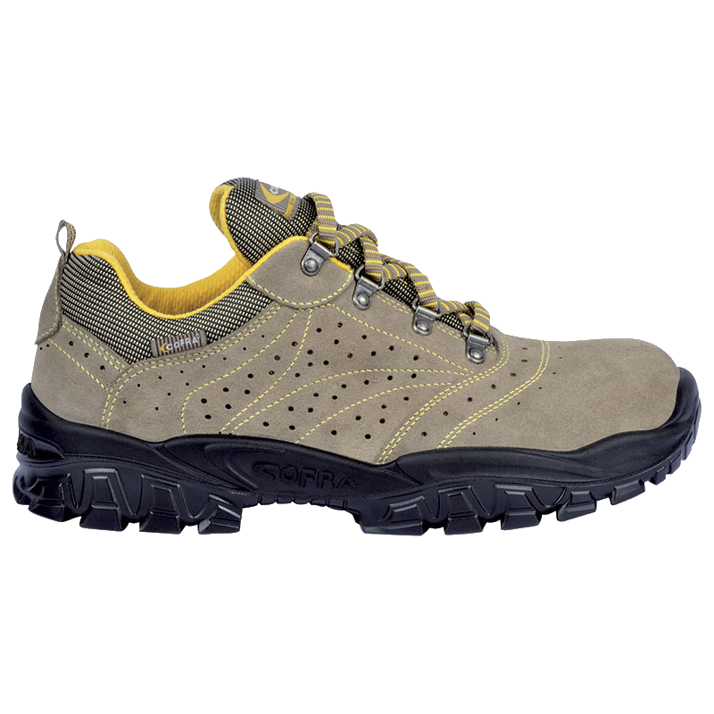 Gelochtes Velourleder · atmungsaktives Innenfutter auswechselbares Fußbett · Stahl-Zehenschutzkappe · sehr geringes Eigengewicht · Weite 11