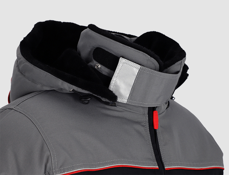 The POLAR Overall and the POLAR Jackets have a high collar and a detachable hood lined with synthetic fur. In addition, a practical closure flap offers an easy way to close the collar.