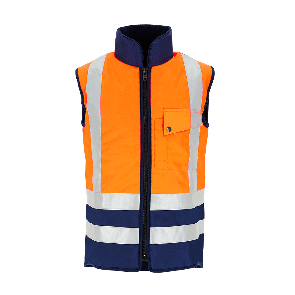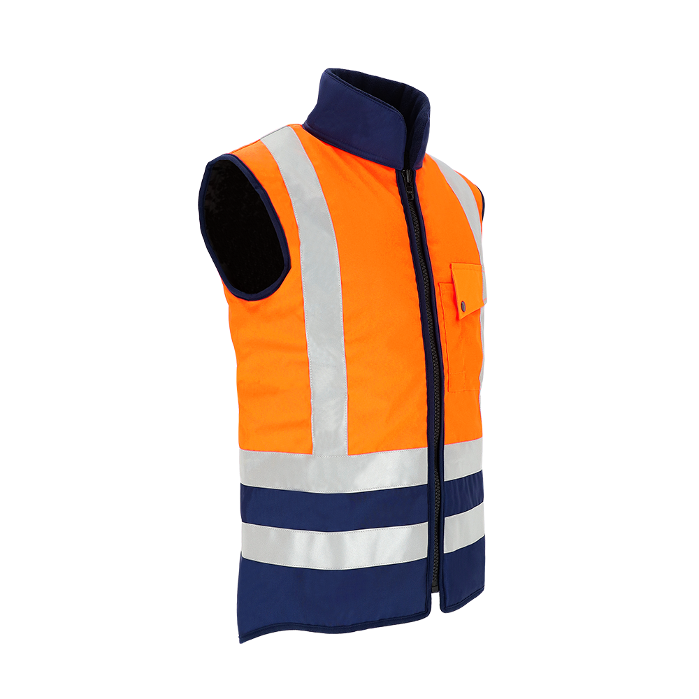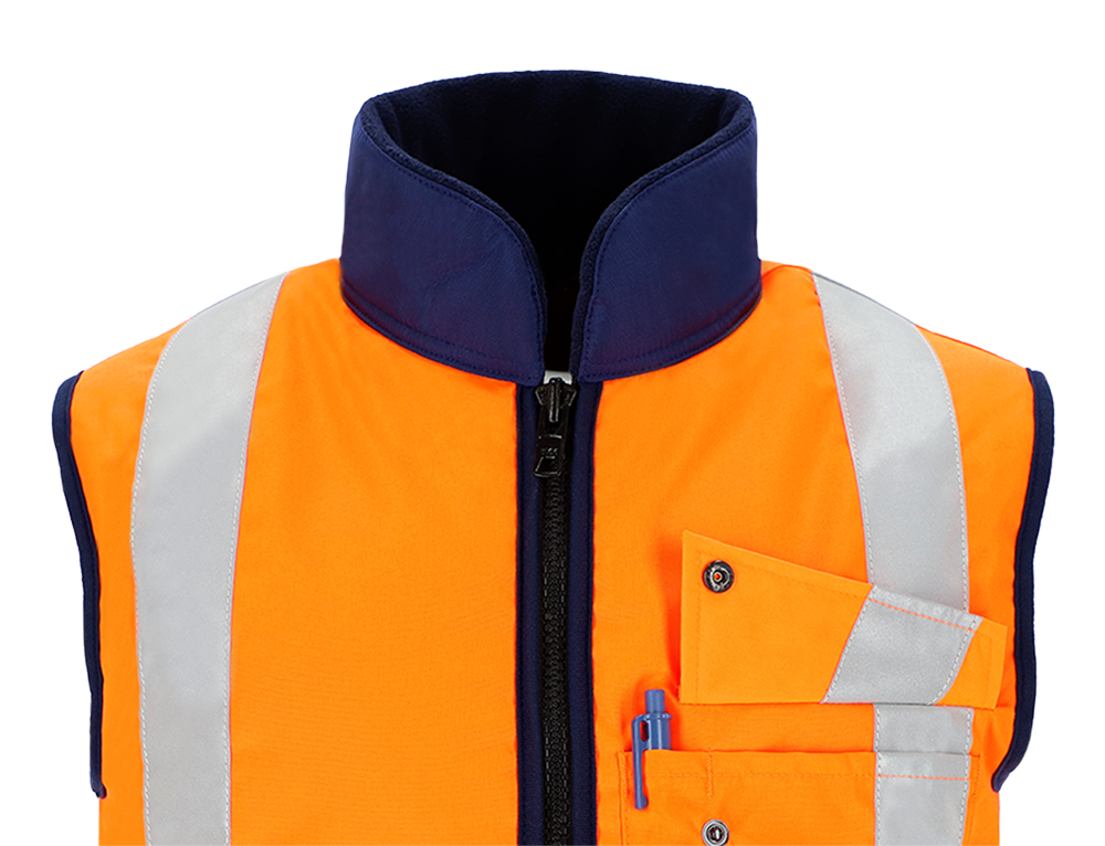 Reinforced fleece collar · Left chest pocket with separate pen pocket · Good body fit with elastic back · Zipper strip is attached on the inside · Quilted polyester insert 150 gr/m²