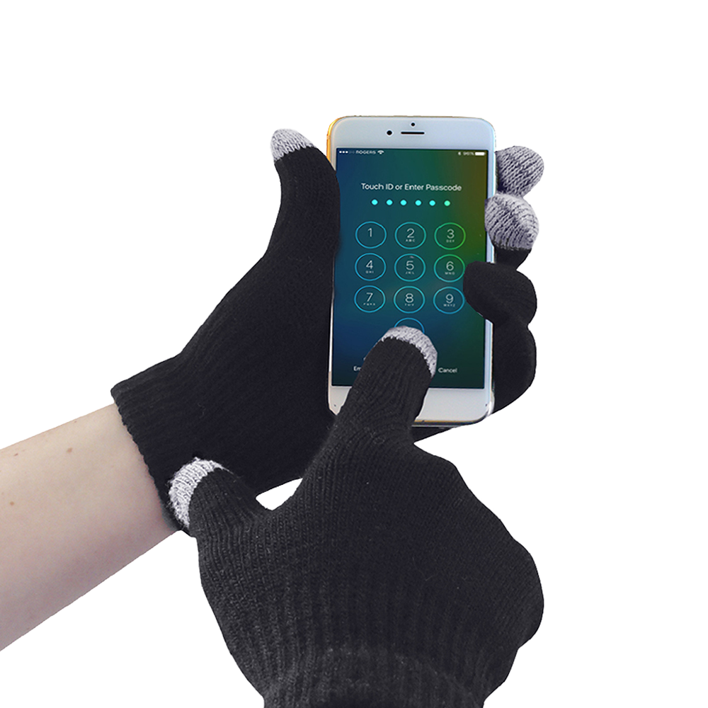 Gloves FG16 100% polyacrylic; durable and warm; index-, middle finger and thumb tip are made of conductive material. Colour: black Size: S/M, L/XL
