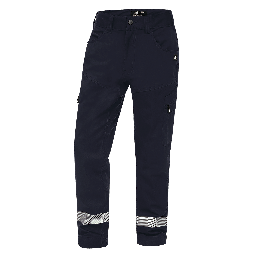 Stretch material on the upper part of the trousers · Two zipped leg pockets, mobile phone and pen pocket inside · Two back pockets and two front pockets · Reflex at the bottom of the legs · Extendable legs (+5cm) · Weight: 250 gsm