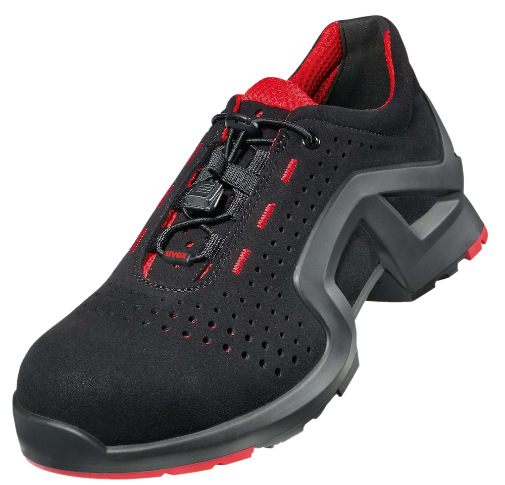 Lightweight and flexible safety shoe · 100% metal-free · Xenova toecap · compact design · anatomical shape · non-magnetic · no thermal conductivity · optimised wearing comfort due to climazone technology · breathable, perforated micro suede upper · optimal ventilation through mesh lining material · made of synthetic materials · individually adjustable, elastic laces · removable comfort footbed, antistatic · padded tongue · polyurethane sole with very good cushioning and slip resistance · meets ESD requirements · width: 11 Mondopoint