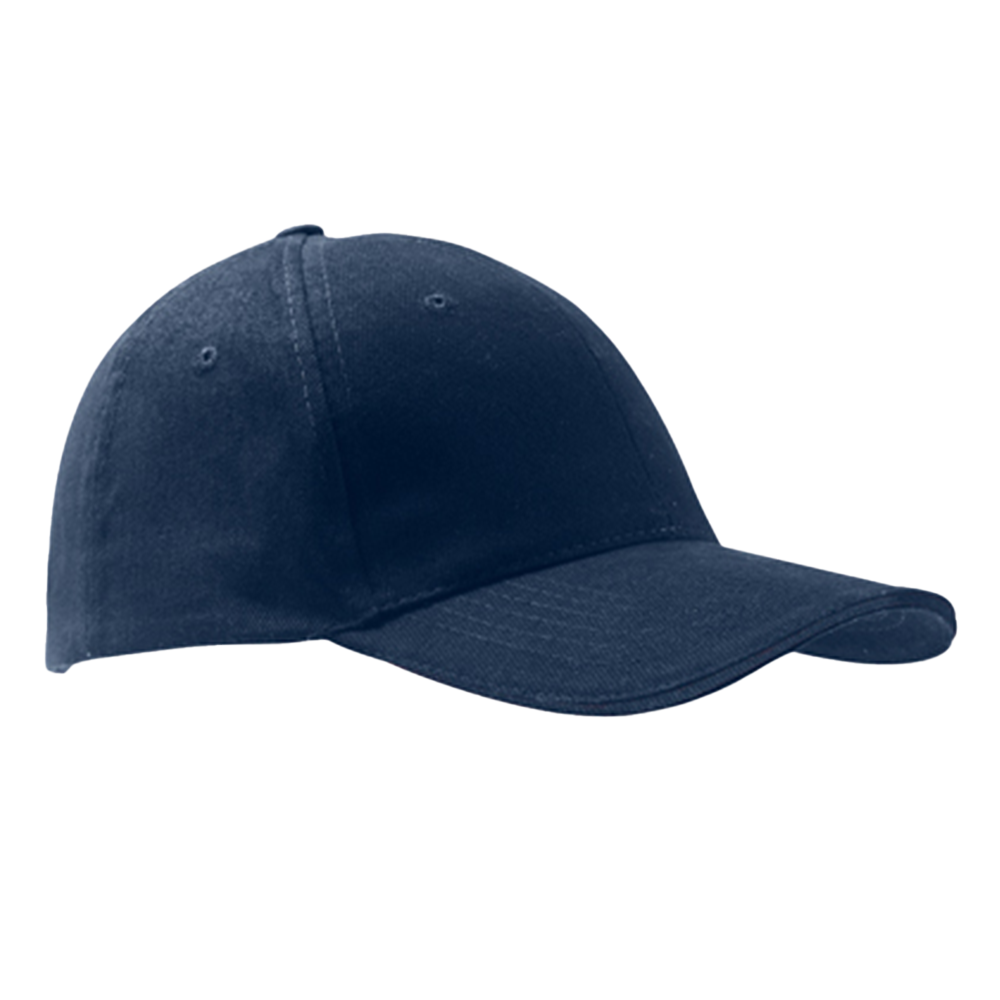 Casquette 6 panneaux · coton brossé · visière incurvée et fermeture réglable avec boucle métallique · panneaux avant renforcés · visière incurvée · fermeture métallique · non lavable