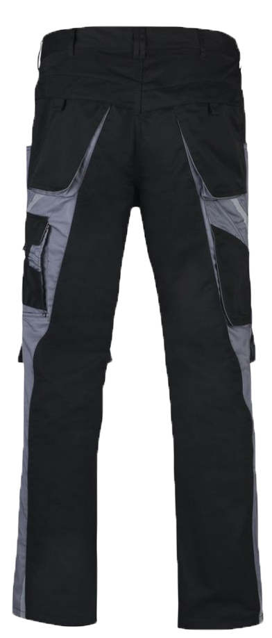 Ceinture de pantalon extensible grâce à un élastique flexible · 2 poches intégrées · fermeture à glissière métallique dans la braguette · 2 poches arrière renforcées servant de poche valise avec rabat et Velcro · 1 poche cargo avec poche téléphone intégrée et poche supplémentaire · poche mètre avec poches supplémentaires appliquées · applications réfléchissantes · renforts genoux · triple coutures rabattues.