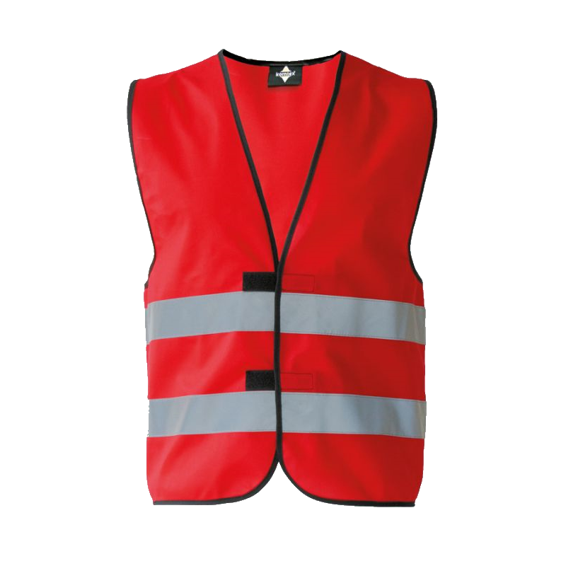 Weste für erhöhte Sichtbarkeit bei Dunkelheit · Saumnähte mit schwarzer Polyestereinfassung verstärkt · zwei 5 cm breite Reflexstreifen um den Körper · zusätzliche Möglichkeit zur Anpassung der Größe durch zwei Klettverschlüsse