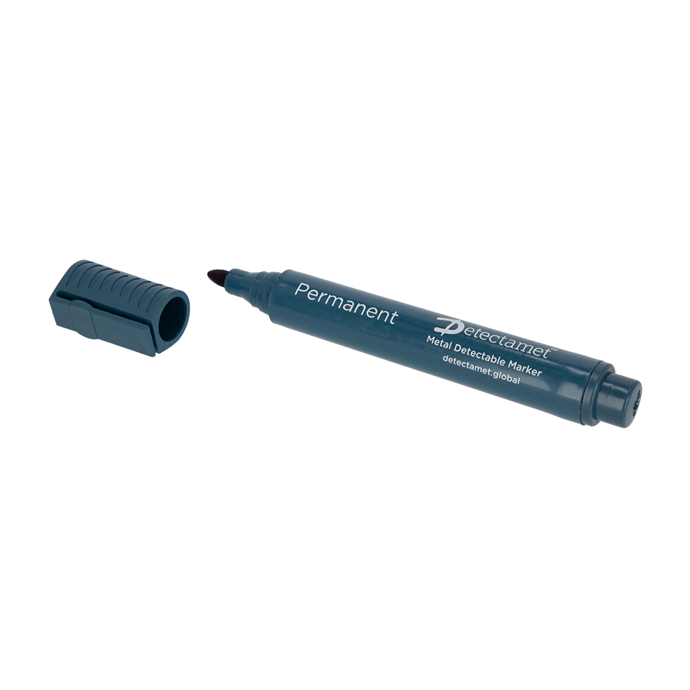 Verkrijgbaar met platte of ronde punt · Met afneembare dop · Dop kan aan het uiteinde van de pen worden bevestigd · Penpunt in schrijfkleur · Geschikt voor röntgen- en metaaldetectoren · Geschikt voor contact met voedingsmiddelen volgens EU & FDA