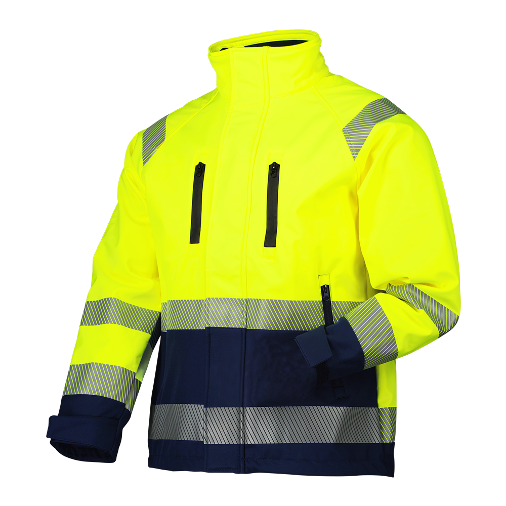 Bovenstof met stretch · Gesneden reflecties · Wind- en waterafstotend · Twee voorzakken met rits · Een borstzak met rits · Binnenzak · Hoge, warme kraag