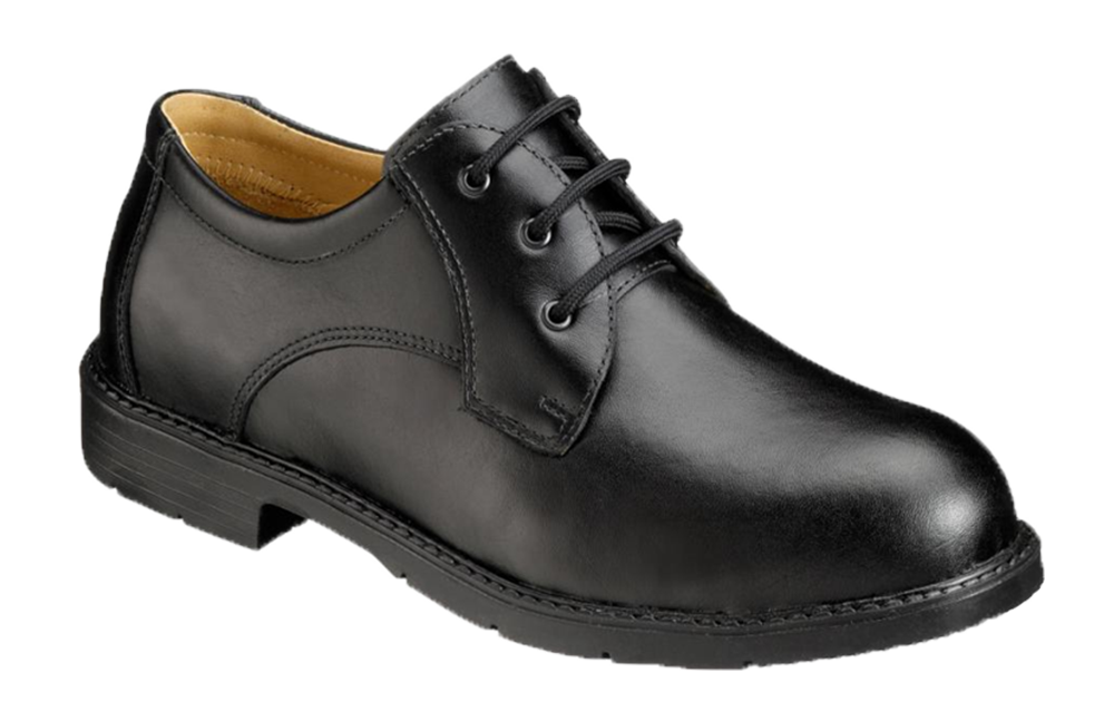 Zakelijke veiligheidsschoen van zwart volnerfleder · antibacteriële inlegzool met leren bovenlaag · antibacteriële en comfortabele leren voering · Binnenzool: waterdicht weefsel · Stalen veiligheidsneus · geen tussenzool · Zool: nitrilrubber / HRO · ESD-gecertificeerd · Breedte: 11 Mondopoint