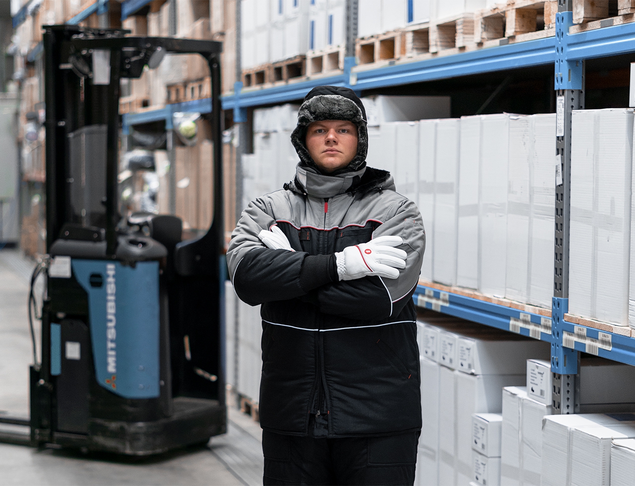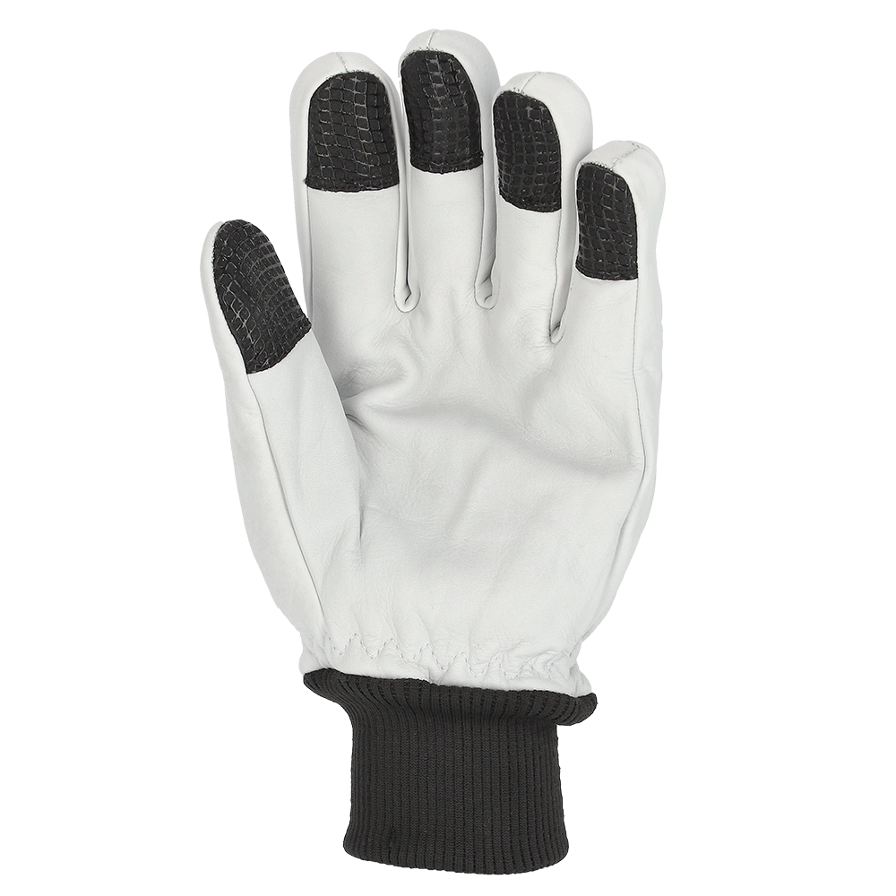 Tiefkühl-Handschuh aus Leder · gefüttert mit weichem Fleece · Isolierung aus 3M Thinsulate™ C40² · Verstärkungsmaterial mit Silikon-Grip an den Fingerspitzen · Strickbündchen · Ideal für: Staplerfahrer