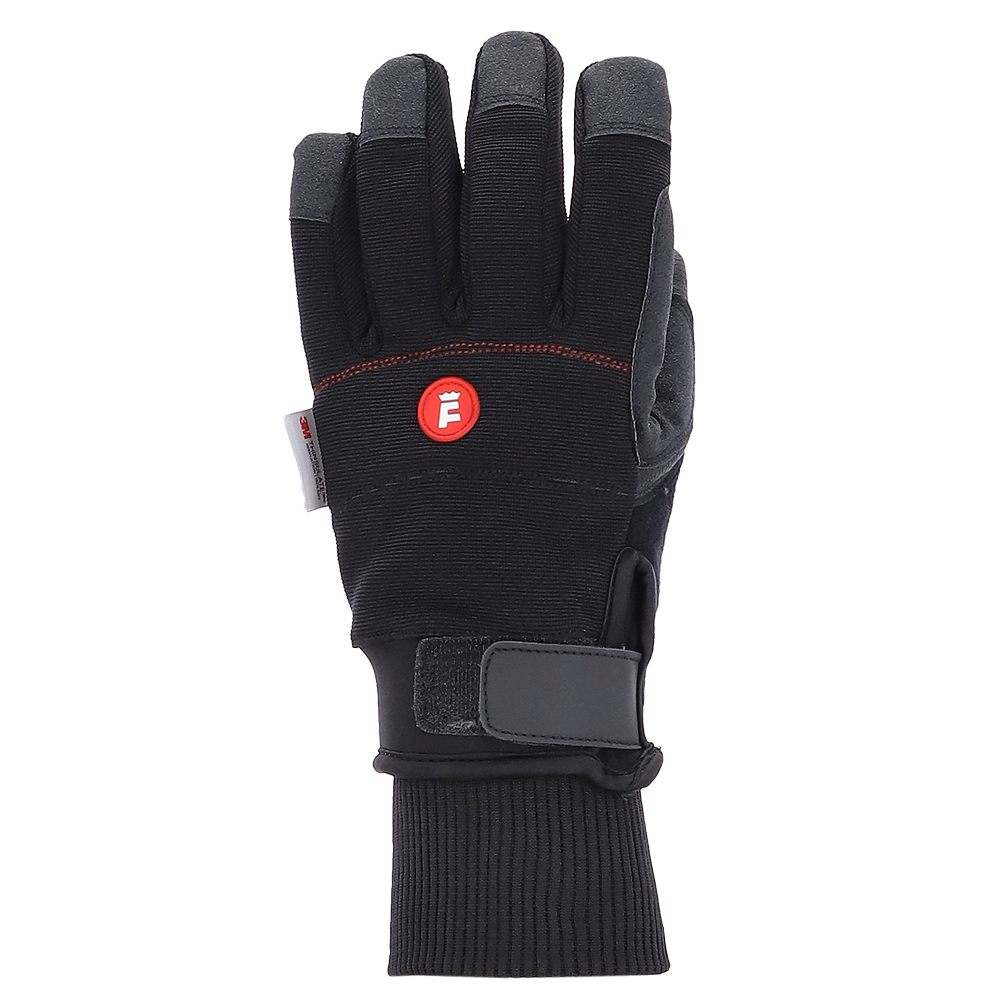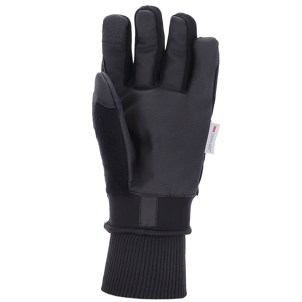 Ergonomische Passform durch vorgeformte Finger · Handrücken aus robustem Polyester-Gestrick · Handfläche aus PU-beschichtetem Polyester-Gewebe · gefüttert mit weichem Fleece · Isolierung aus 3M Thinsulate C150 · PVC-beschichtetes Verstärkungsmaterial an den Fingerspitzen von Mittel-, Zeigefinger und Daumen · Neopren-Stulpe · verstellbar durch Klett-Lasche · mit zusätzlichem Strickbündchen · Ideal für: Kommissionierer
