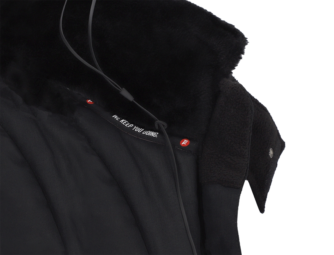 - Hoher Kunstfellkragen mit Lasche zum Schließen
